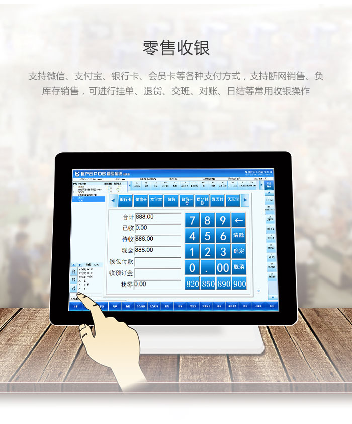 3.付款方式:前台收银时收款方式多样化,商家可开通最常用的消费者付款方式。